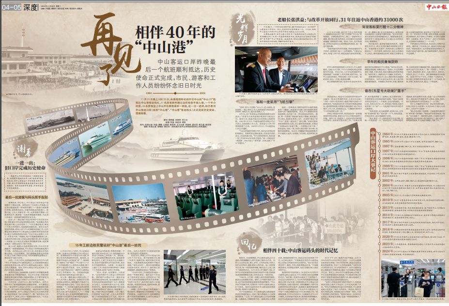 11月25日晚上9時35分,由香港國際機場開往中山的“中山20”輪抵達中山港客運碼頭,41名旅客順利通過邊防檢查手續(xù)入境。一個半小時前,49名游客坐上中山開往香港最后一班船。這一出一進間,標(biāo)志著舊中山客運口岸(俗稱“中山港”、“中山港”客運碼頭)正式完成歷史使命,圓滿謝幕。