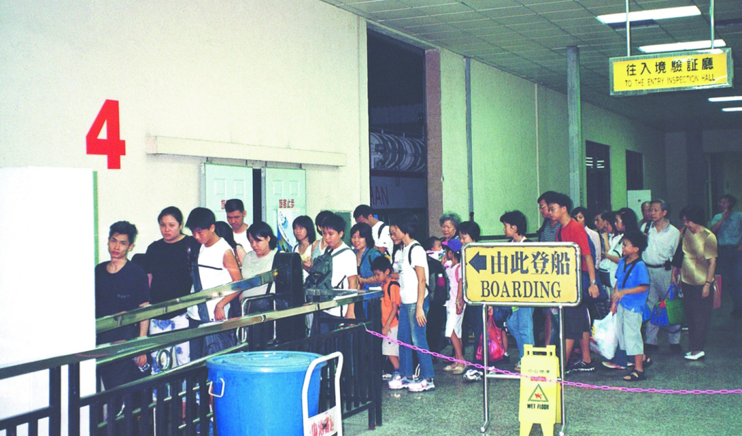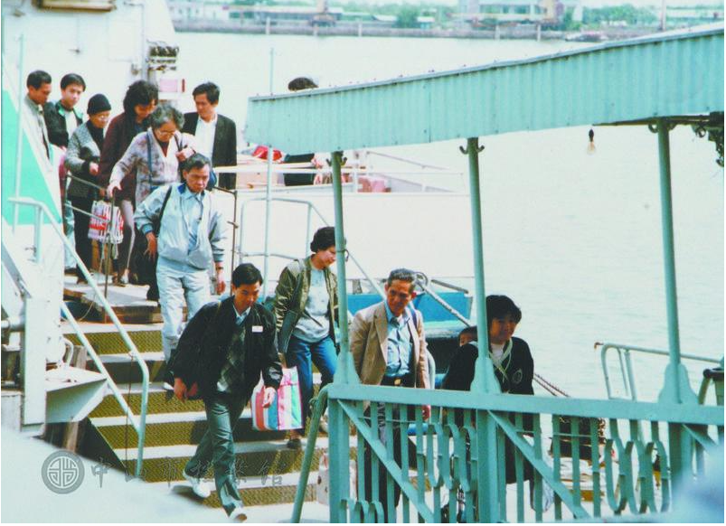 1985年,首批搭乘中山至香港客輪的旅客登船。